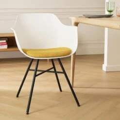 Nolon Noa-Liz Eetkamerstoel Wit – Okergeel Kussen – Zwarte Poten