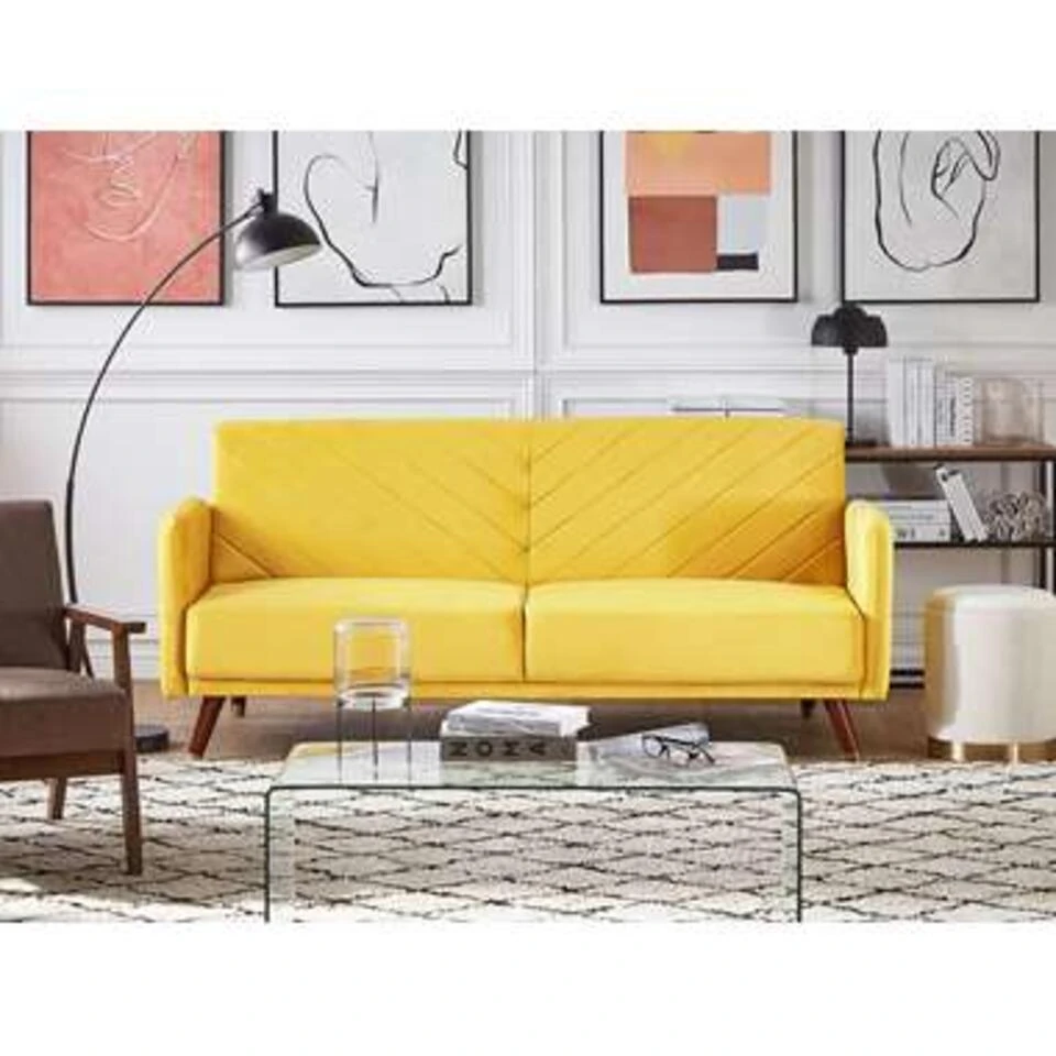 Beliani Driezitsbank – SENJA Geel Fluweel