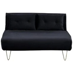 Indrukwekkende fluwelen bank met bedfunctie en sierkussen. Breng een glamoureus gevoel in je interieur met deze functionele en stijlvolle bank. De stoffering is gemaakt van duurzaam en zacht fluweel en de dikke vulling zorgt ervoor dat de bank erg comfortabel is. De luxe uitstraling van het stuk worden verzekerd door de gouden metalen poten. De bijpassende kussens met knopen en afneembare hoes voegen knusheid en charme toe aan het geheel. Daarnaast is de bank om te zetten naar een slaapbank waardoor je je geen zorgen hoeft te maken als er gasten willen blijven slapen.