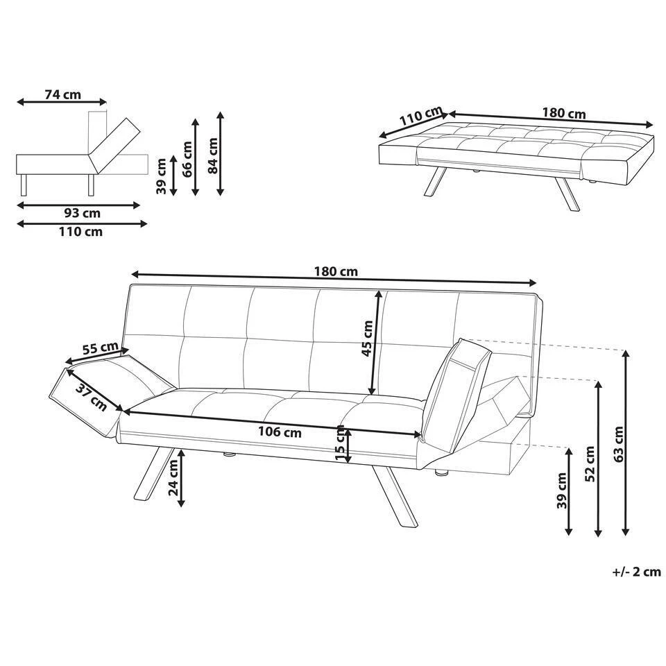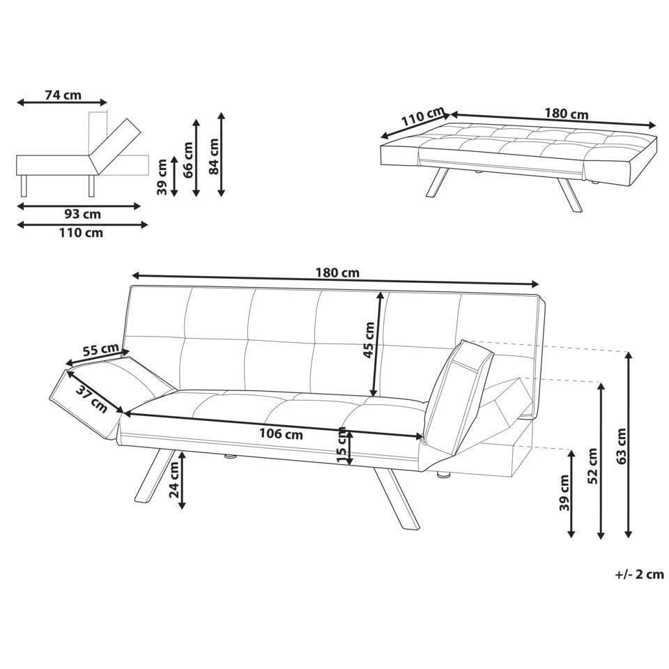 Belangrijkste eigenschappen: Zeer gemakkelijk te veranderen in een bed, Tijdloos design, Hoogwaardige kwaliteit stoffering, De waterafstotende afwerking zorgt ervoor dat gemorste vloeistoffen op het oppervlak blijven, Uitzonderlijk onderhoudsvriendelijk, Verstelbare armleuningen, Verstelbare rugleuning