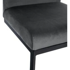 Het lineaire frame van gepoedercoat metaal zorgt voor een geweldige blikvanger en het lichte schommelen van de zitting wordt als zeer prettig ervaren. Een geïntegreerde dwarsbalk dient als comfortabele voetensteun, terwijl de rugleuning op de zitting de onderrug ondersteunt. De zitting en rugleuning zijn royaal gestoffeerd en afgewerkt met een chique fluwelen bekleding.