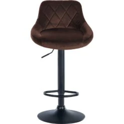 Deze krukken maken indruk met hun stijlvolle ontwerp. De zitting is bekleed met fluwelen stof en afgewerkt met gedetailleerde siernaden. Met behulp van de gaslift kan dit model traploos op de gewenste hoogte worden ingesteld, zodat het ideaal past bij elke baliehoogte. De voetsteun, die voor een uitstekend zitcomfort zorgt, kan synchroon met de hoogte van de zitting worden versteld. De zitting kan samen met de voetsteun 360° worden gedraaid. Het frame is gemaakt van metaal en onder de trompetvoet zitten vloerbeschermers om krassen op de vloer te voorkomen.