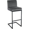 Het matzwart metalen frame met trompetbodem geeft de barkruk de nodige stabiliteit. De barkruk is traploos in hoogte verstelbaar door middel van een gasveer en kan eenvoudig worden aangepast aan elke hoogte. De geïntegreerde voetsteun is ook van matzwart metaal en biedt ook gedurende lange tijd comfortabel en veilig zitcomfort.