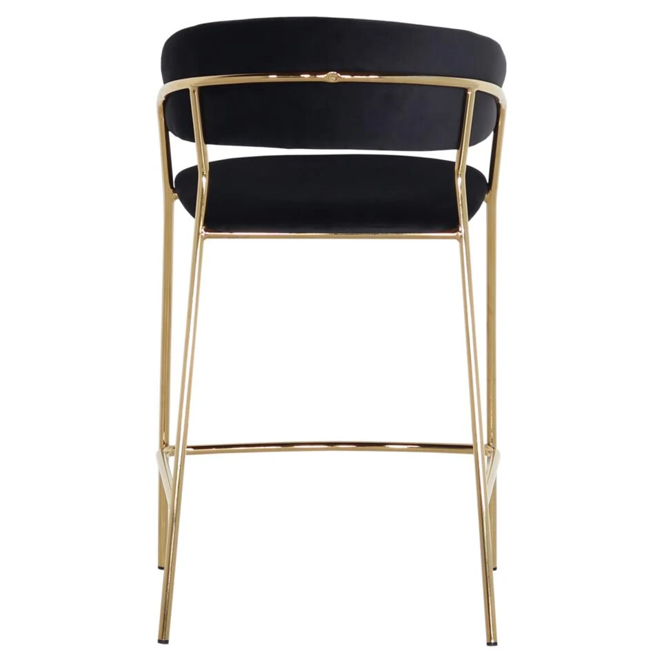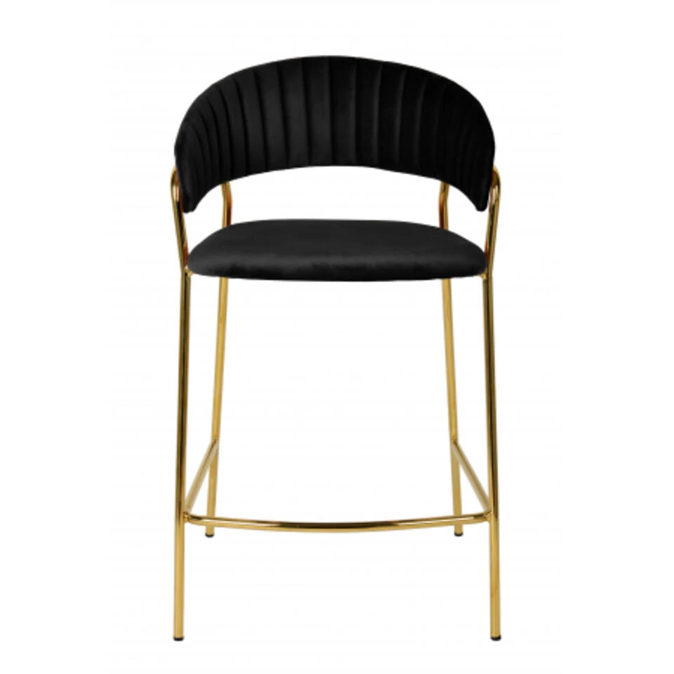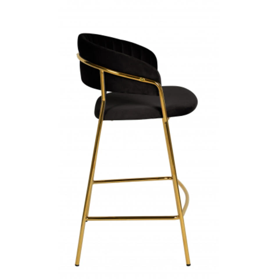 Giga Meubel Barstoel Velvet Zwart – Goud – 52x52x92cm – Turin Luxe