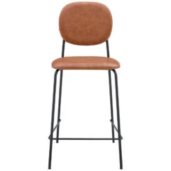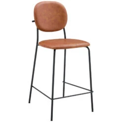 De EDMOND barkrukken zijn bekleed met kunstleer en opgevuld met schuim voor optimaal comfort. De ijzeren poten zorgen voor stabiliteit en stevigheid. Er is ook een voetsteun ingebouwd voor het comfort van de benen. Dankzij hun sobere ontwerp passen deze krukken gemakkelijk in verschillende interieurstijlen. Het contrast tussen de bekleding en de zwarte poten voegt een discreet vleugje elegantie toe aan je ruimte!
