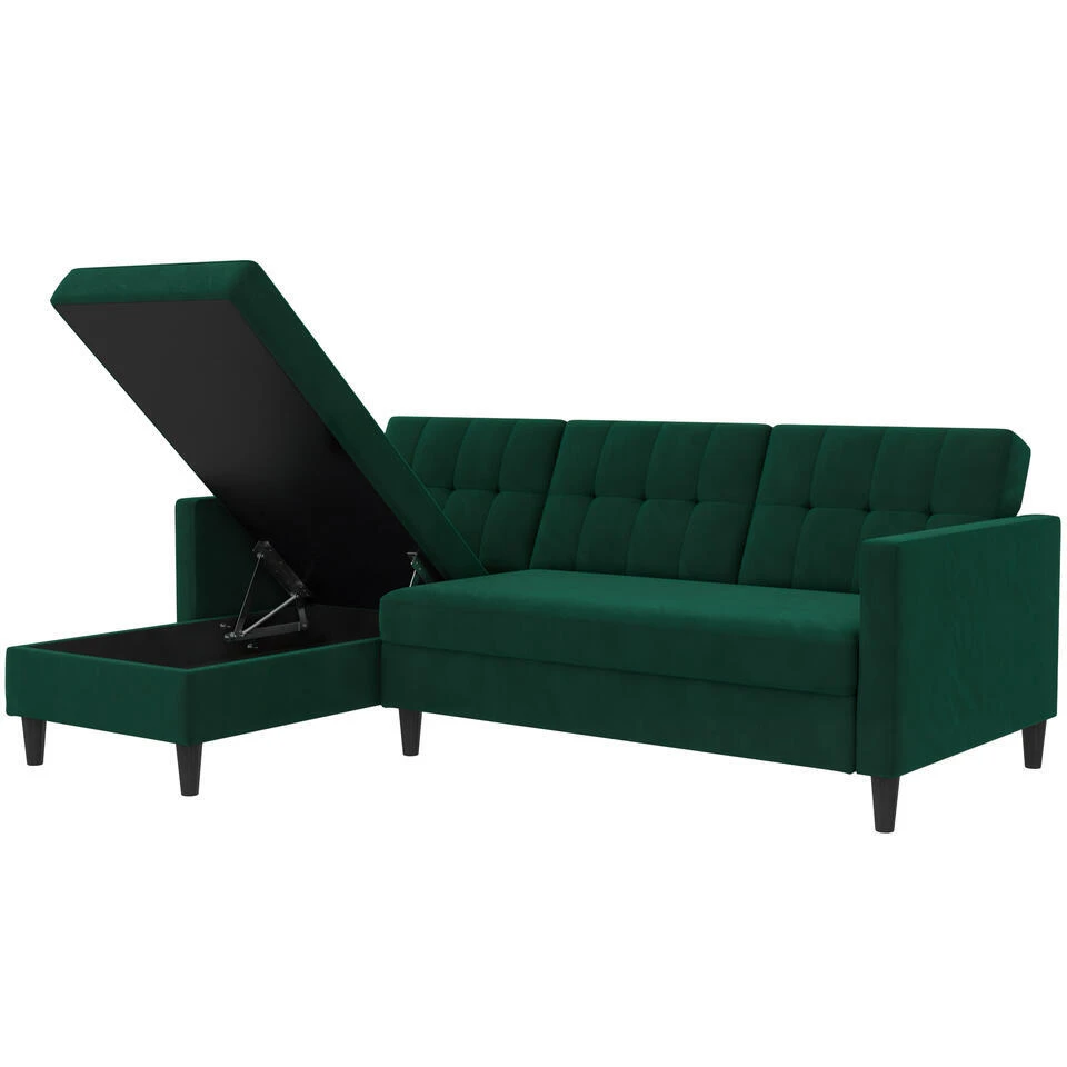 Hartford – 3-zits Hoekslaapbank In Donkergroen Stof