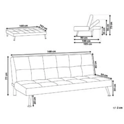 Belangrijkste eigenschappen: Zeer gemakkelijk te veranderen in een bed, Rugleuning verstelbaar in 3 posities, Uiterst comfortabele zitting, Gezellige uitstraling, Trendy design en kleur, Hoogwaardige kwaliteit stoffering