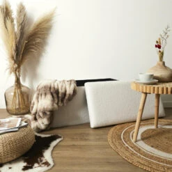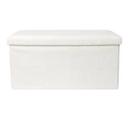 Home Deco Factory poef Natuurlijk met opbergruimte waar je ook op kunt zitten. Deze opvouwbare poef, ook wel een hocker genoemd is ideaal voor elk huishouden. De poef heeft een afneembare deksel, geeft je extra opbergruimte en is tevens te gebruiken als voetenbankje. Bespaar ruimte door bijvoorbeeld speelgoed of dekens erin op te bergen of de poef als zitplek te gebruiken. Een mooie aanvulling voor in huis. Kleur: wit. Materiaal: MDF/polyester. Afmeting: ca. 76 x 38 cm.