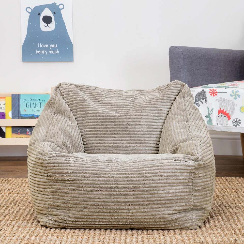 KLEINE LUXES; Kinderen zullen dol zijn op deze super zachte corduroy zitzak. Wanneer inzakcomfort samengaat met verfijnde stijl, zullen ze nergens anders meer willen zitten!