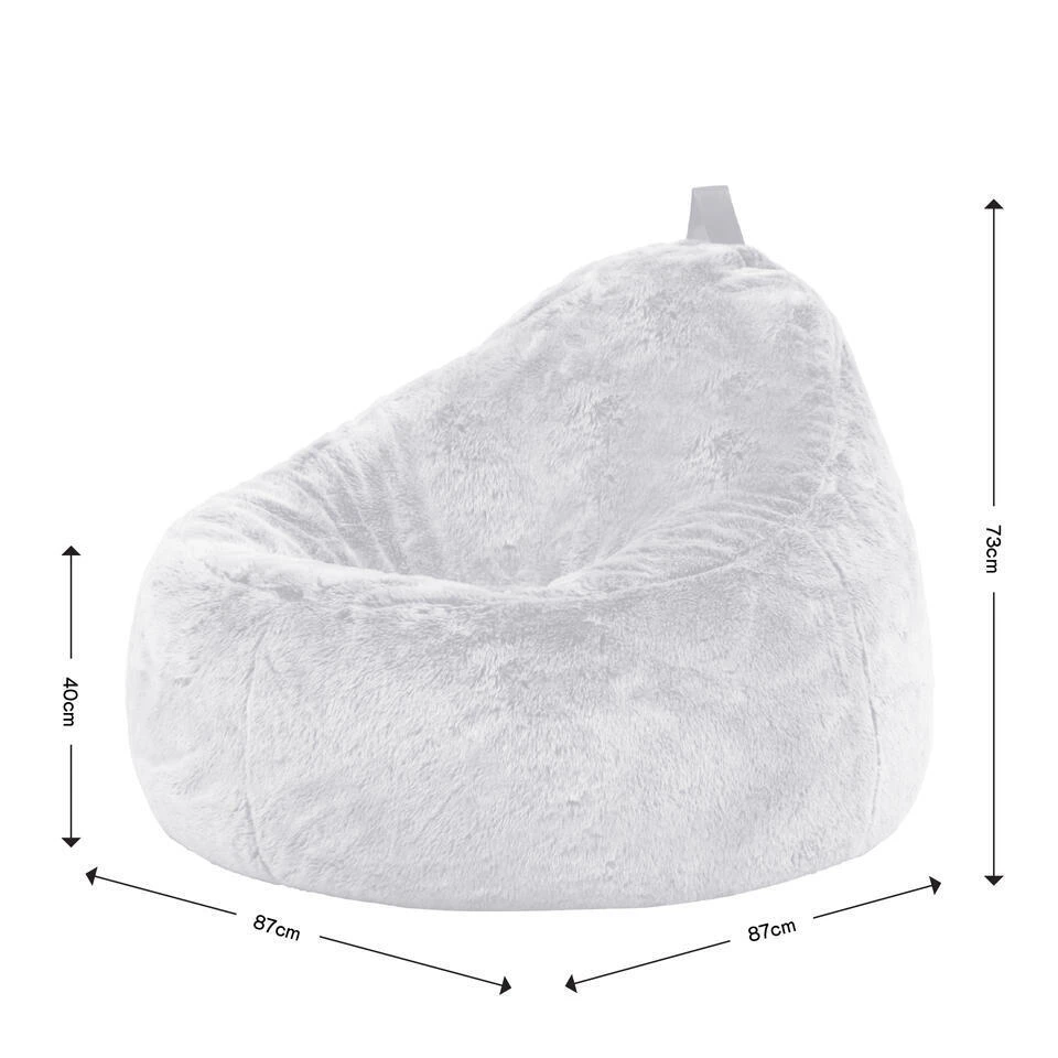 WEGZAKKEN IN COMFORT; Zak weg in de diepe zitting van deze grote, omhullende zitzak, ontworpen met een ondersteunende rug; zak weg in de duizenden vrij stromende korrels die zich naar de vorm van je lichaam vormen.