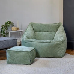 RELAX EN LEUN ACHTEROVER; Deze zitzakzetel is gemaakt om lang in te zitten, vervaardigd van superzacht corduroy en gevuld met precies de juiste hoeveelheid kralen voor een perfect ondersteunend inzakeffect.
