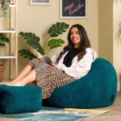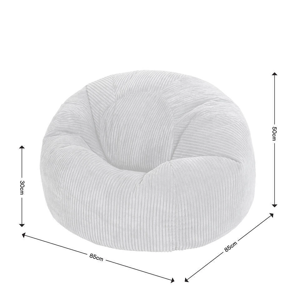 RELAX EN LEUN ACHTEROVER; Deze zitzakzetel is gemaakt om lang in te zitten, vervaardigd van superzacht corduroy en gevuld met precies de juiste hoeveelheid kralen voor een perfect ondersteunend inzakeffect.