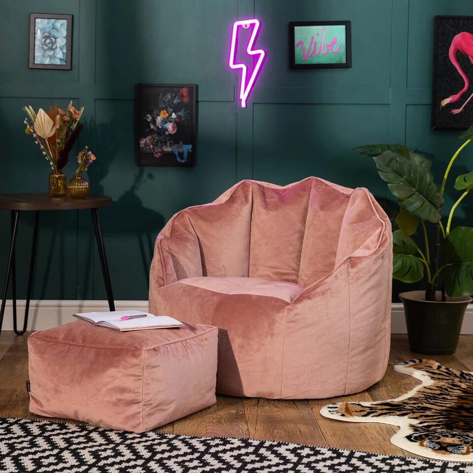 ICONISCH ONTWERP; Deze luxe zitzak is klaar om een statement te maken. Hij is gemaakt van super zacht pluchen fluweel, heeft een onweerstaanbaar aanvoelende textuur en een biesdetail voor een mooie finishing touch.