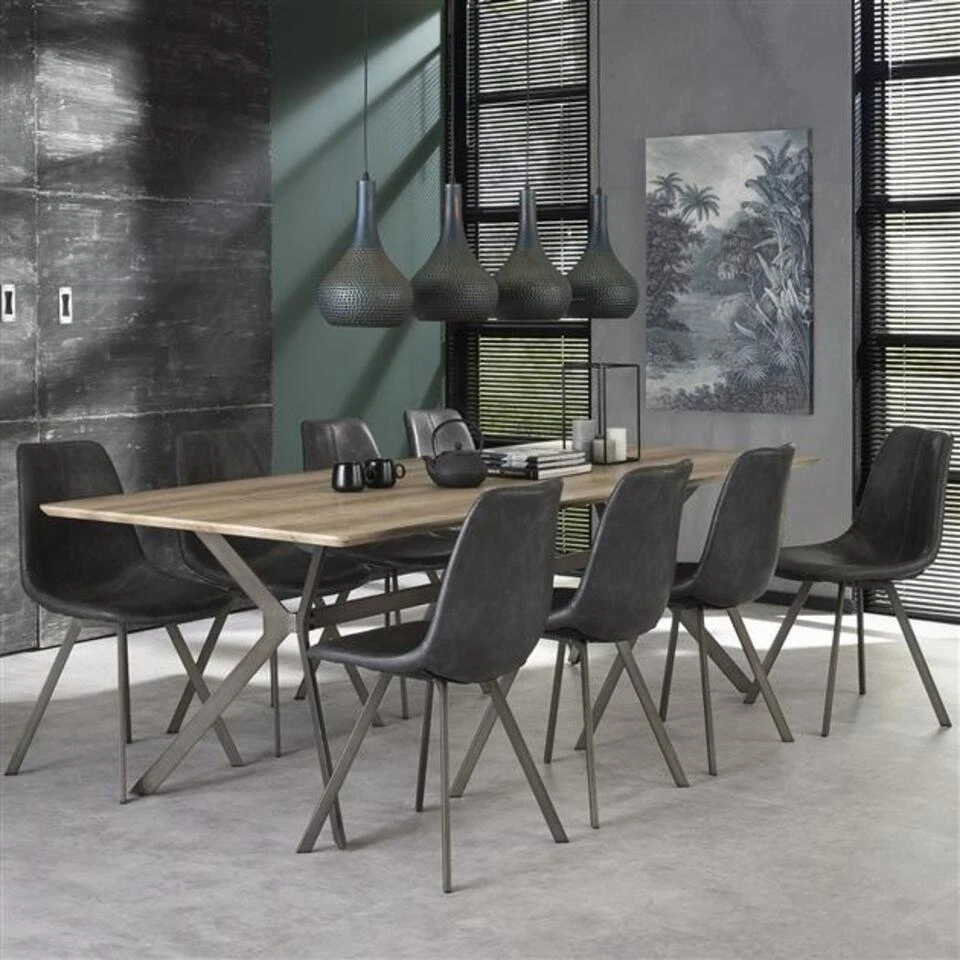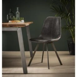 Industriële Eetkamerstoel Benjie Antraciet Kunstleer – Kunstleder – Zwart