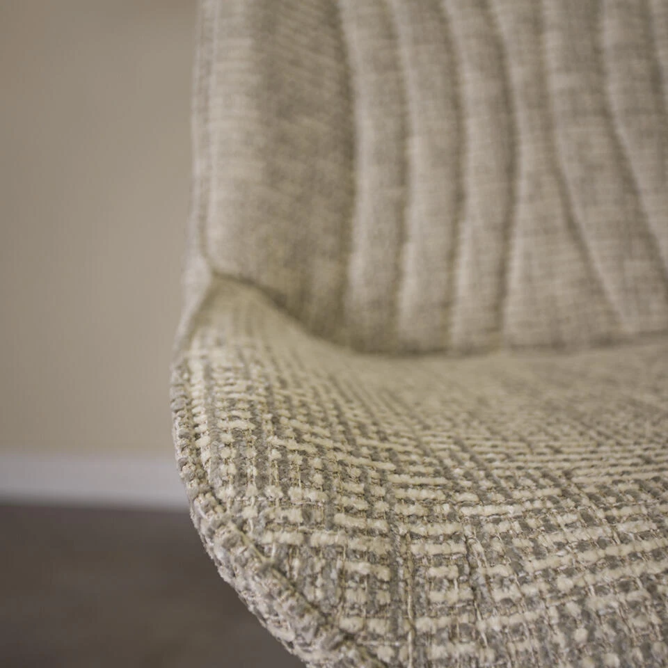 Het robuuste frame is gemaakt van zwart metaal en zorgt in combinatie met de chenille zitting voor een elegante, maar stoere uitstraling. Onder dit product zitten vloerdoppen die laminaat beschermen tegen krassen. Er worden viltjes meegeleverd om overige vloeren te beschermen tegen krasvorming.