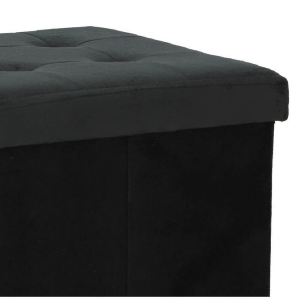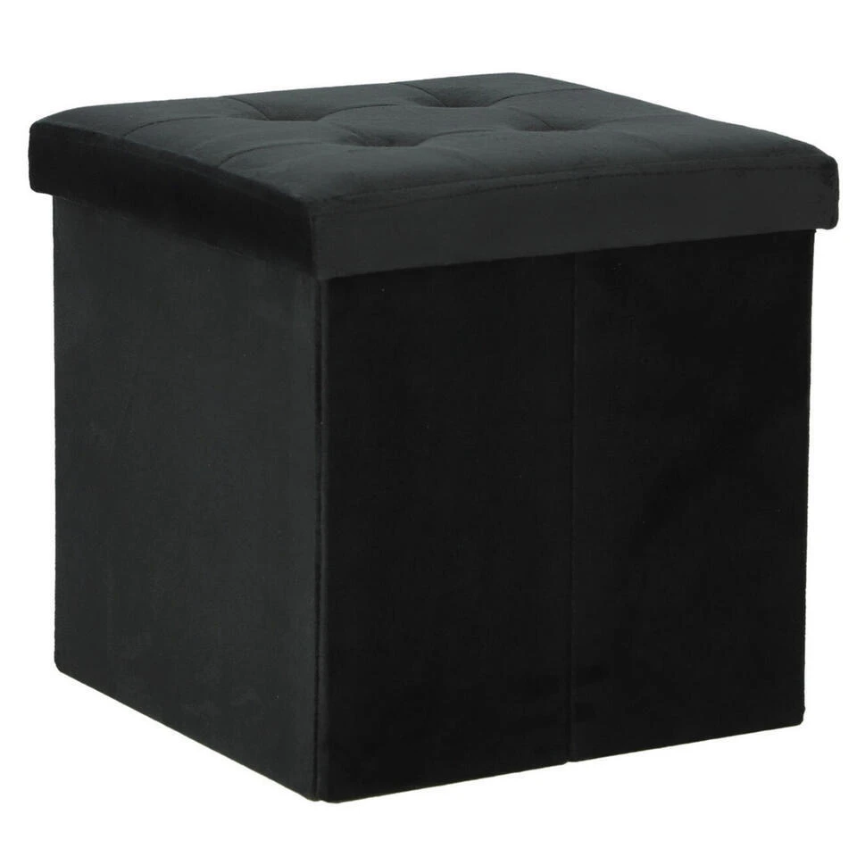 Poef/hocker/zitkrukje met opbergruimte waar je ook op kan zitten. Deze opvouwbare poef, ook wel een hocker genoemd is ideaal voor elk huishouden. Zeker met zo nu en dan extra gasten in huis. Deze poef met afneembare deksel geef je extra opbergruimte en zitplekken en is een mooie aanvulling voor in huis, is tevens ook te gebruiken als voetenbankje. Kleur: zwart. Materiaal: fluweel polyester en karton. Afmeting: 38 x 38 x 38 cm. Maximaal draaggewicht: 100 kg.