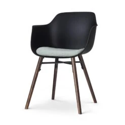 De combinatie van het strakke, eigentijdse ontwerp en de warme walnoot kleur van de houten poten voegt een vleugje elegantie toe aan elke eetkamer. De kunststof zitting van deze kuipstoel is niet alleen duurzaam, maar ook nog eens erg praktisch. Maak je geen zorgen over knoeien of morsen: het gladde oppervlak is gemakkelijk af te nemen met een vochtige doek. De houten poten zijn gemaakt van eikenhout, wat bijdraagt aan de duurzaamheid en stabiliteit van de stoel. Naast de ergonomische vorm van de kunststof zitting is de eetkamerstoel ook ontworpen met armleuningen, zodat je urenlang ontspannen aan tafel kan zitten. Het vaste zitkussen gemaakt van zachte stof tilt het comfort naar een nog hoger niveau en voegt wat zachtheid toe aan het ontwerp. Deze comfortabele kuipstoel is verkrijgbaar in twee verschillende kleuren en met vier kleuren stoelkussens, waardoor je eenvoudig de perfecte combinatie kunt vinden die past bij jouw persoonlijke stijl.
