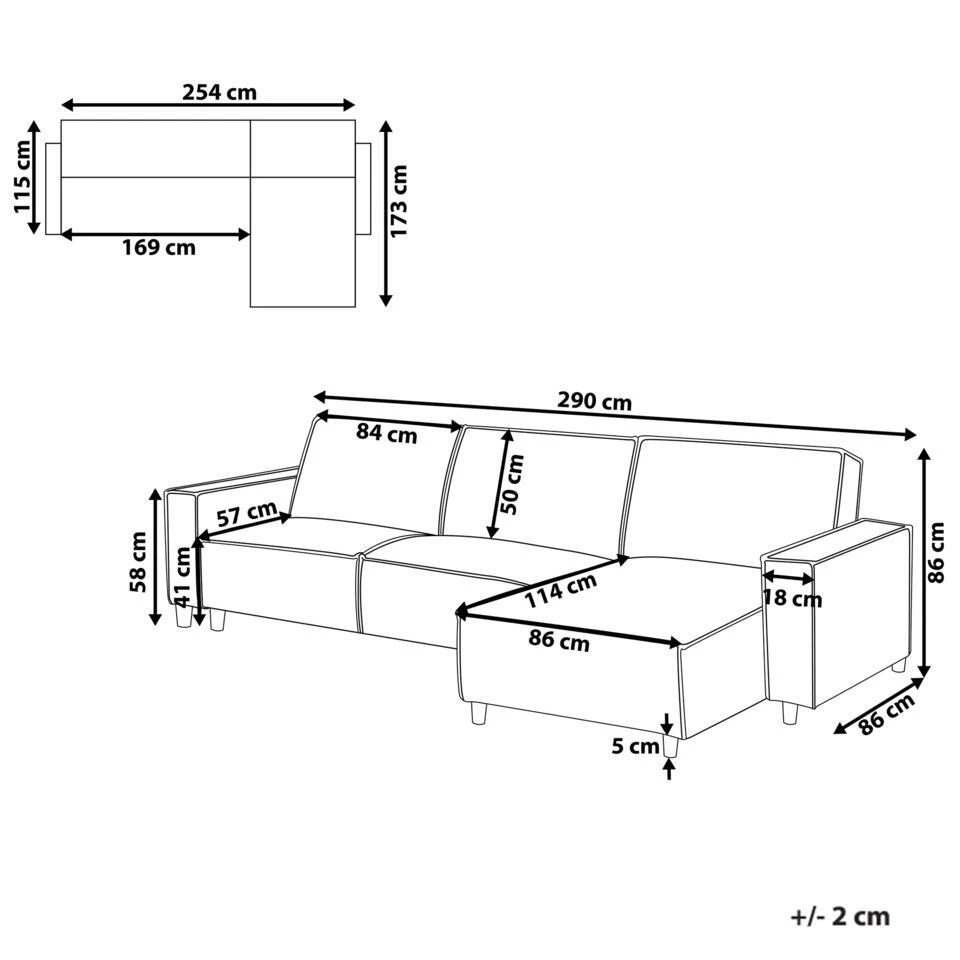 Zitoppervlak: 254×57 cm