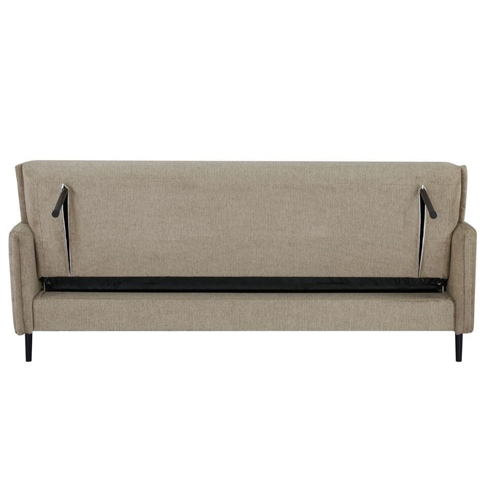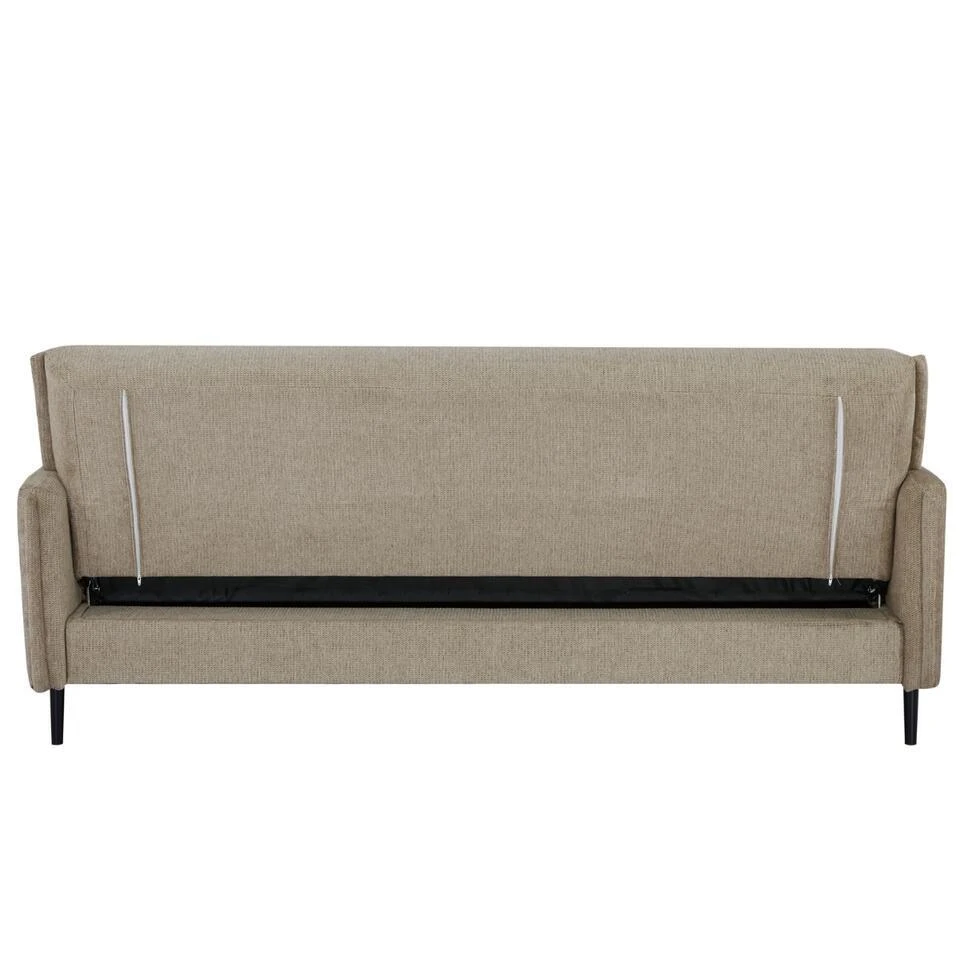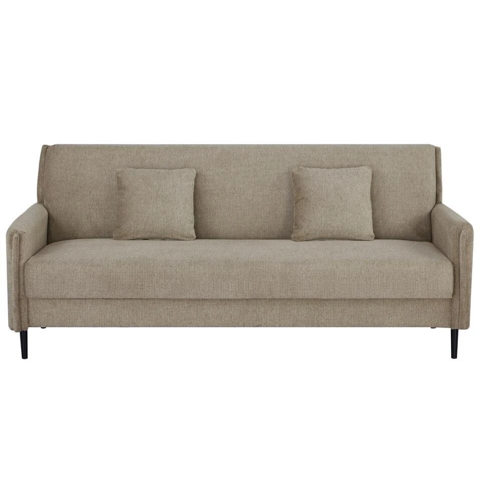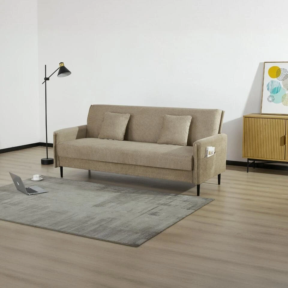 Materiaal: De Torvi slaapbank is vervaardigd uit een combinatie van stof en metaal. Deze materialen zorgen voor een stevige constructie en een comfortabele zitervaring. De stof biedt een zachte en uitnodigende uitstraling, terwijl het metaal zorgt voor een robuuste en duurzame basis.