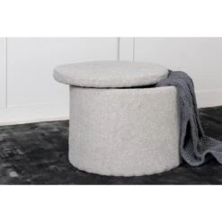 De poef is ontworpen met een stevige basis die zorgt voor stabiliteit en duurzaamheid, terwijl het lichte gewicht het gemakkelijk maakt om te verplaatsen. Het subtiele grijze teddy-materiaal voegt een vleugje elegantie toe en past moeiteloos in verschillende woonstijlen.