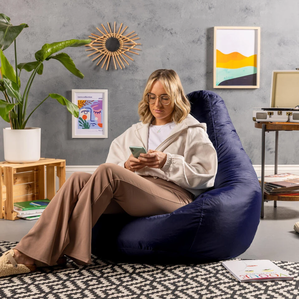 ULTIEM COMFORT; Met een verhoogde rugleuning voor ondersteuning en een ruime zitting is dit een zetel met een twist en een gloednieuwe kijk op de klassieke zitzakvorm, gevuld met precies de juiste hoeveelheid kralen voor een perfect ondersteunend inzakeffect.