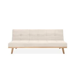 Vicky – 3-zits Slaapbank Met Houten Poten / Crèmekleurige Stof