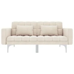 Het houten frame en de metalen poten dragen bij aan de stevigheid en de dikke voering maakt de bank extra comfortbal. Deze slaapbank kan snel en eenvoudig worden veranderd van een bank naar een bed en vice versa. Als bank kan hij in 3 verschillende standen versteld worden. De twee inbegrepen kussens zorgen voor extra zitcomfort.