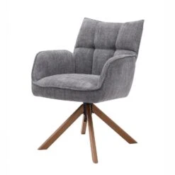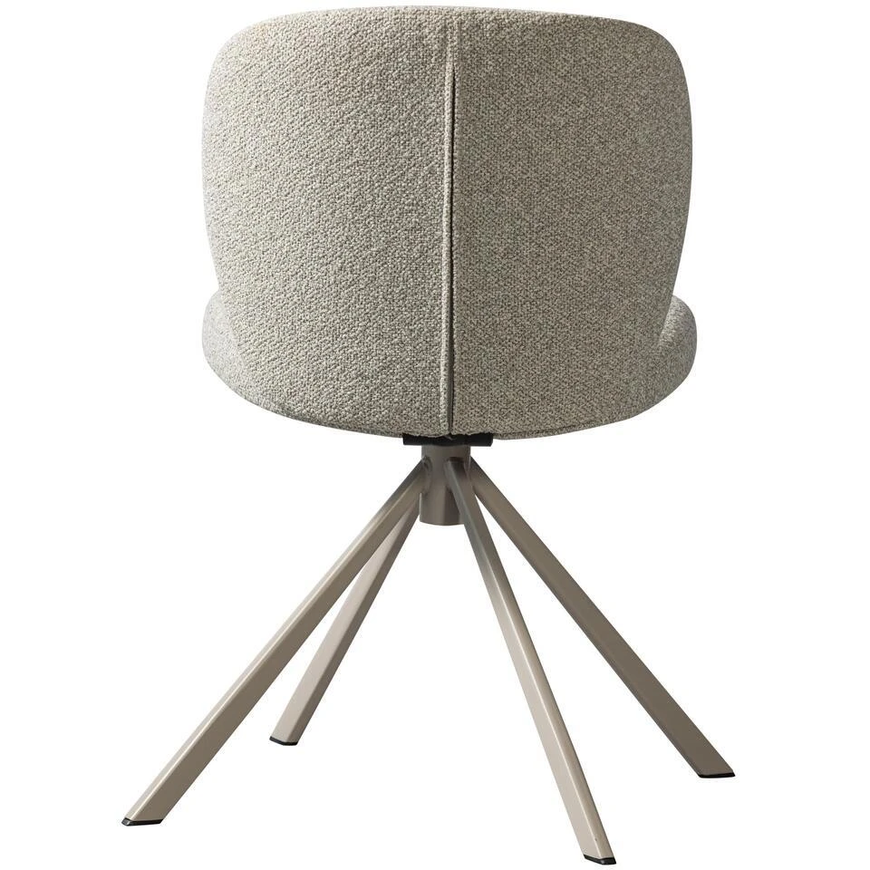 De Femke eetkamerstoel biedt een fijne zitplaats aan de eettafel en is makkelijk te combineren in verschillende interieurs. Femke behoort tot de collectie van het Nederlandse interieurmerk WOOOD. De naturel kleur van het stalen onderstel smelt samen met de zachte bouclé stof. Door de draaipoot kan er gemakkelijk worden aangeschoven aan de eethoek.