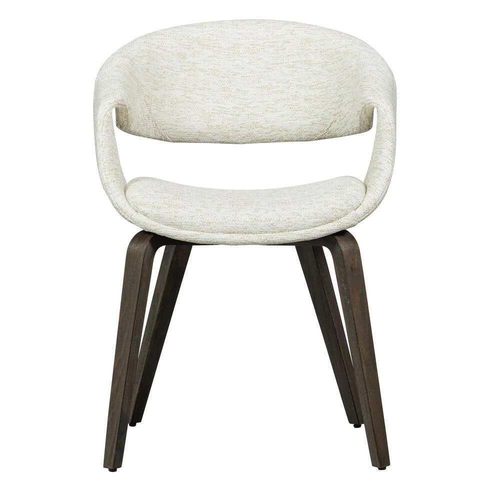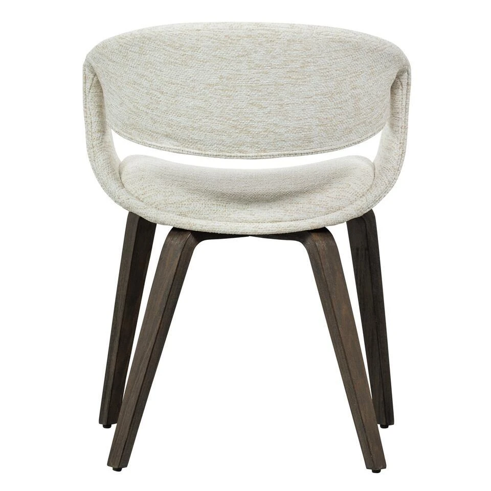 De Yossi eetkamerstoel komt uit de collectie van het Nederlandse merk WOOOD en heeft een stevig houten onderstel en een comfortabele zit. De stoel is in verschillende uitvoeringen verkrijgbaar, zodat je de perfecte match voor jouw interieur kunt vinden. De Yossi is bekleed met een geweven stof van 100% polyester, wat zorgt voor een stijlvolle uitstraling. Een bijzonder detail is de afwerking rondom de armleuning. Deze elegante en comfortabele eetkamerstoel is perfect om urenlang te tafelen.
